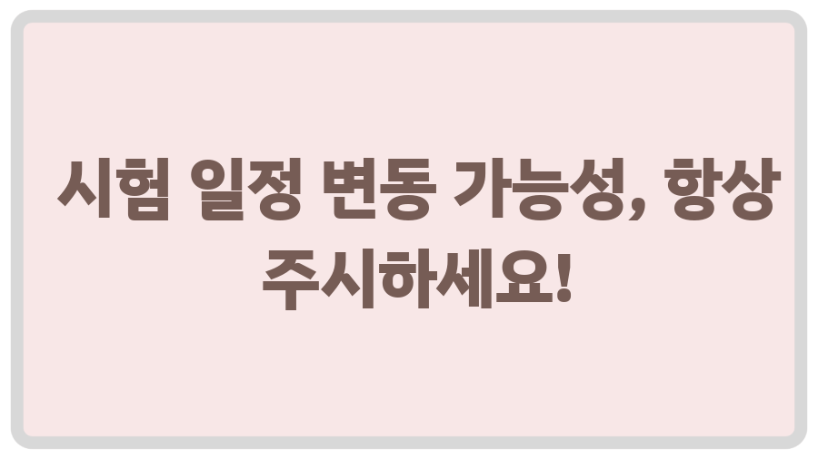천재지변이나 감염병 확산 등 예상치 못한 상황으로 인해 시험 일정이 변경될 수도 있습니다.