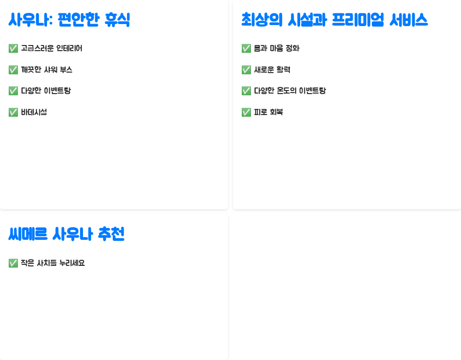 지친 일상 속 작은 사치를 누리고 싶다면, 씨메르의 사우나를 추천합니다.