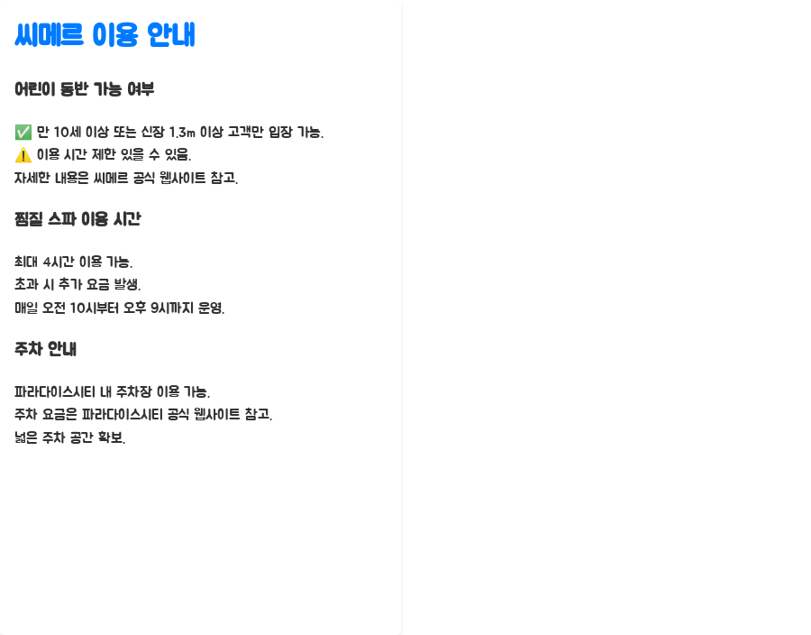 오늘은 여러분의 그런 갈증을 해소해 드릴 특별한 곳, 바로 파라다이스시티 씨메르에 대한 모든 것을 파헤쳐 보겠습니다.
