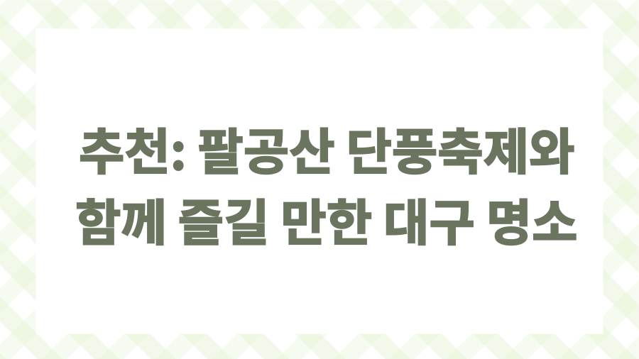 팔공산 단풍축제와 함께 알찬 대구 여행을 계획해보시는 건 어떨까요?
