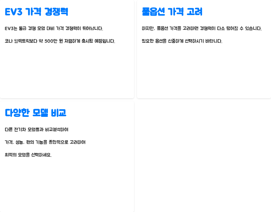 경쟁 모델 비교: EV3의 가격 경쟁력